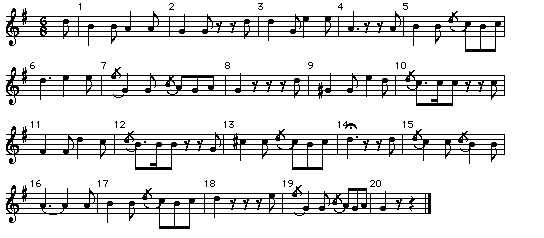 The melody of theme from the six variations composed by Beethoven over the duet Nel cor piò non mi sento. The first example is a ridiculously metronomical performance made by computer of the theme from these six variations, in which all timing is solely derived from the explicit markings in the score (namely the note durations and the global tempo). All dynamic (loudness) information is ignored as is of course obligatory on a harpsichord, the instrument that we will simulate with the synthesizer. We will omit the accompaniment in all our examples, and concentrate only on the melody of the theme and its timing aspects.