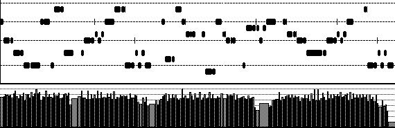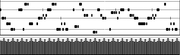 We added some random timing of every note in the range from 0-10% of the tempo. A listeners creates structures (groupings) in this noise. Its sounds better than the metrical version. The next example is a real performance to show how much extra timing information is added to the score by a performer: